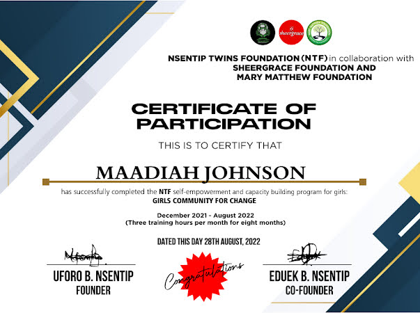 Before turning 18, Maadiah Johnson took great pride in her roles as a changemaker, author, and YouTuber. At just 16, she published her first book, 'Clawed to Death', and became the youngest member of the Uyo Book Club. Her achievements were celebrated at the 1st and 2nd National Book Club and Reading Promoters Conference, hosted by the Uyo Book Club, where she presented her work. Maadiah advocated for her peers to embrace reading, creativity, and productivity, envisioning a future where young celebrities significantly contribute to Nigeria's GDP. She also presented a paper titled "Raise Them Queens" at a sensitisation workshop organised by FEYREP, a project of Dr. Mrs. Martha Udom Emmanuel, the former First Lady of Akwa Ibom State. In her presentation, Maadiah emphasised the importance of raising young men and women to be confident and purposeful, capable of becoming the kings and queens of their generation. In addition to her literary and public speaking efforts, Maadiah consistently created visual and written content to inspire and advocate for change among teenagers. Her work aims to add value to the world, driven by the unwavering support of her parents, who made numerous sacrifices to nurture her creative pursuits. Their intentional upbringing has shaped Maadiah into the queen she is today.